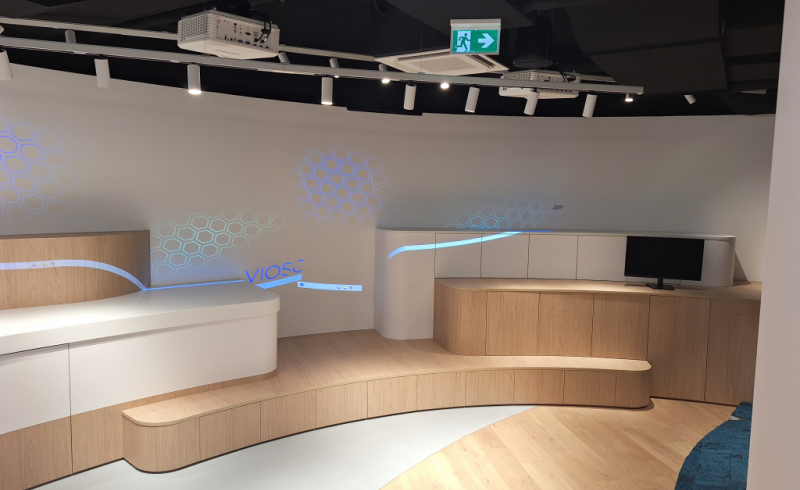 For this 200 m² experiential showroom—designed as an immersive journey through materials and their innovative applications—our team handled the full manufacture of all bespoke furniture elements. A large-scale project combining curved design, technological integration, precision assembly, and high-end finishes.